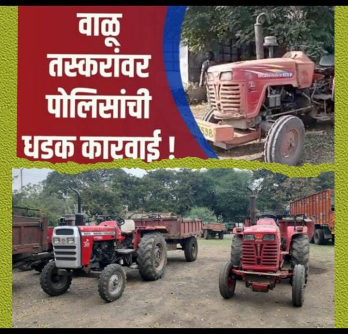 प्रशासनाला सर्वात मोठा महसूल मिळवून देणारा घटक म्हणून खनिज साठ्याकडे बघितल्या जाते त्यापैकी मुख्य खनिज साठा म्हणजे रेती असून सध्या शासनाकडून रेती घाटाचा लिलाव न झाल्याने शासकीय कामासह अन्या कामांवर रेती अनुपलब्ध होत असल्यामुळे व रेतीची मागणी आजूबाजूच्या परिसरात मोठ्या प्रमाणात होत असल्याने या संधीचा फायदा घेत खांबाळा .बोपापुर. बारव्हा येथील काही ट्रॅक्टर मालक झटपट श्रीमंत बनण्याच्या नादातून वरोरा परिसरात वरदान म्हणून लाभलेल्या पोथरा नदीतून प्रशासनाची पूर्वपरवानगी न घेता रेतीचा उपसा करून रेतीचा ढीग करून पंधरा मिनिटात आपली तस्करीची कारवाई पूर्ण करून आजू बाजूच्या परिसरात चढ्या भावाने रेती विक्री तस्करी करून करत होते या कामामध्ये त्यांनी चक्क तहसील ऑफिस ते रेती घाट व रेती वितरण करणार वाल्यांच्या स्थळा पर्यंत मोबाईल टावर प्रमाणे महसूल तथा पोलीस प्रशासनाची माहिती घेण्याकरिता एक मानवी शृंखल यंत्रणा उभी केली होती हा कारनामा गत अनेक दिवसापासून सुरू होता तस्करीमुळे प्रशासनाचे हजारो ब्रास रेती चोरीने लाखो रुपयाचे नुकसान झाले होते व सदर रेती तस्करांमध्ये प्रशासना व पत्रकार व त्यांच्यावरील दंड होणाऱ्या दंडात्मक कारवाई याबाबत मनामध्ये भीती नव्हती मात्र नव्याने रुजू झालेले आयपीएस उपविभागीय पोलीस अधिकारी नयोमी साठम यांच्या मार्गदर्शनात ठाणेदार अमोल काचोरे यांच्या नेतृत्व डीबी इन्चार्ज एपीआय योगेश सिंग यादव यांनी गोपनीय मिळालेल्या माहितीच्या आधारे सापळा रचात