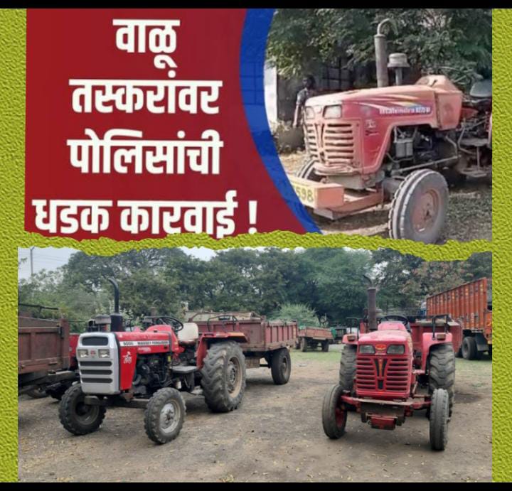 तालुक्यातील पोथरा नदीतून २४ फेब्रुवारीला ट्रॅक्टर क्रमांक एम एच 34 एपी १८०७ त्याच्या सोबतच बिना नंबर रेती भरलेली ट्रॅक्टर ट्रॉली व यासह दुसरा ट्रॅक्टर एम एच ३२ वाहन क्रमांक ०४२२ यासह रेतीने भरलेली ट्रॉली एम एच 40 ए.६४३४ यांच्यावर कारवाई करत आठ लक्ष सात हजार रुपयाचा चा माल जप्त करत ट्रॅक्टर ड्रायव्हर आकाश लक्ष्मण ऊईके वय 26 वर्ष गाव बारवा वरोरा कपिल लक्ष्मण ढेकणे वय 21 वर्ष गाव खांबाळा वरोरा व वसंता दिलीप बावणे वय 43 वर्ष गाव खंबाळा यां तिघांवर गुन्हा दाखल करण्यात आला असून वरोरा पोलिसांनी कारवाई करून ट्रॉली गाडीवर नंबर नसताना पोलिसांनी आरटीओ कार्यालय पासिंग साठी चौकशी रिती चोरी साठी उपयोग ट्रॅक्टर कर्मशियल किंवा एग्रीकल्चर या रेती चोरट्यांनी आज पर्यंत किती ब्रास चोरी केली याबाबत अधिक चौकशी होणार आहे सदरहू कारवाई पोहवा दिलीप सुर, पोअं शशांक बदामवार, नितीन तुराले नितीन गाउत्रे यांनी संयुक्तरीत्या ही कारवाई केली.. या कारवाईमुळे अनेक रेती तस्कर भूमिगत झाले असून जी कारवाई महसूल प्रशासनाने करायची होती ती कारवाई पोलीस प्रशासनाने केल्यामुळे या कार्याची प्रशंसा करण्यात येत आहे..