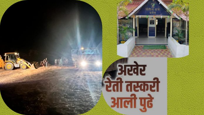तालुक्यातील पोथरा नदीतून २४ फेब्रुवारीला ट्रॅक्टर क्रमांक एम एच 34 एपी १८०७ त्याच्या सोबतच बिना नंबर रेती भरलेली ट्रॅक्टर ट्रॉली व यासह दुसरा ट्रॅक्टर एम एच ३२ वाहन क्रमांक ०४२२ यासह रेतीने भरलेली ट्रॉली एम एच 40 ए.६४३४ यांच्यावर कारवाई करत आठ लक्ष सात हजार रुपयाचा चा माल जप्त करत ट्रॅक्टर ड्रायव्हर आकाश लक्ष्मण ऊईके वय 26 वर्ष गाव बारवा वरोरा कपिल लक्ष्मण ढेकणे वय 21 वर्ष गाव खांबाळा वरोरा व वसंता दिलीप बावणे वय 43 वर्ष गाव खंबाळा यां तिघांवर गुन्हा दाखल करण्यात आला याची शाई वा वाळते न वाळते तोच आज दि.०.२/०३/२०२४ रोजी पहाटे पाच वाजता दरम्यान, तालुका वरोरा, ग्राम येवती येथील वेणा नदिच्या, मारोती देवघाटवर काही इसम हायवा, ट्रॅक्टर व जे.सी.बी.च्या साहयाने अवैद्यरीत्या रेती उत्खनन करत आहे. अशा गुप्त खबरेवरुन मा.नयोमी साटम मॅडम, सहायक पोलीस अधिक्षक, वरोरा यांनी मा.मुकम्मा सुदर्शन सा, पोलीस अधिक्षक, चंद्रपुर, मा.रिना जनबंधु मॅडम, अप्पर पोलीस अधिक्षक चंद्रपुर यांचे मार्गदर्शनाखाली ग्रे. पोउपनि विलास बल्की, पोहवा धनराज गेडाम, पोलीस अंमलदार विठठ्ल काकडे,प भाउराव हेपट, रमेश कार्लेवाड, महेश गावतुरे, यांचेसह ग्राम येवती येथील वेणा नदिच्या, मारोती देवघाटवर जाउन कारवाई केली असता, १) विशाल मारोती बदकल, रा. मांढेळी, २) गजानन विठठ्ल येडमे, रा.वंदली ३) भोला आत्राम, रा.बोरी ४) लंकेश चंपतराव बदकल, रा.येवती ५) ओमप्रकाश साहु ६) विकासकुमार, ७) गज्जु मांगरूडकर रा. नागरी हे येवती येथील वेणा नदिच्या, मारोतीदेव घाटतुन, अवैद्यरीत्या रेती उत्खनन करून, जे.सी.बी.च्या साहयाने, दोन हायवा व एक ट्रॅक्टर मध्ये, भरत असतांना मिळुन आले. वरून घटनास्थळावरून ०२ हायवा, १ ट्रॅक्टर, जे.सी.बी.,०५ मोबाईल, व ८, ब्रास रेती असा एकुण १,०६,१५,०००रू.चा मुद्देमाल जप्त केला. आरोपी विरूध्द कलम-३७९,३४ भादवि, सहकलम-४८ महाराष्ट्र महसुल अधिनियमप्रमाणे गुन्हा दाखल करण्यात आला. गुन्हयाचा तपास पोलीस निरीक्षक अमोल काचोरे यांचे मार्गदर्शनाखाली, सहायक पोलीस निरीक्षक विनोद जांभळे पोस्टे वरोरा हे करत आहेत.