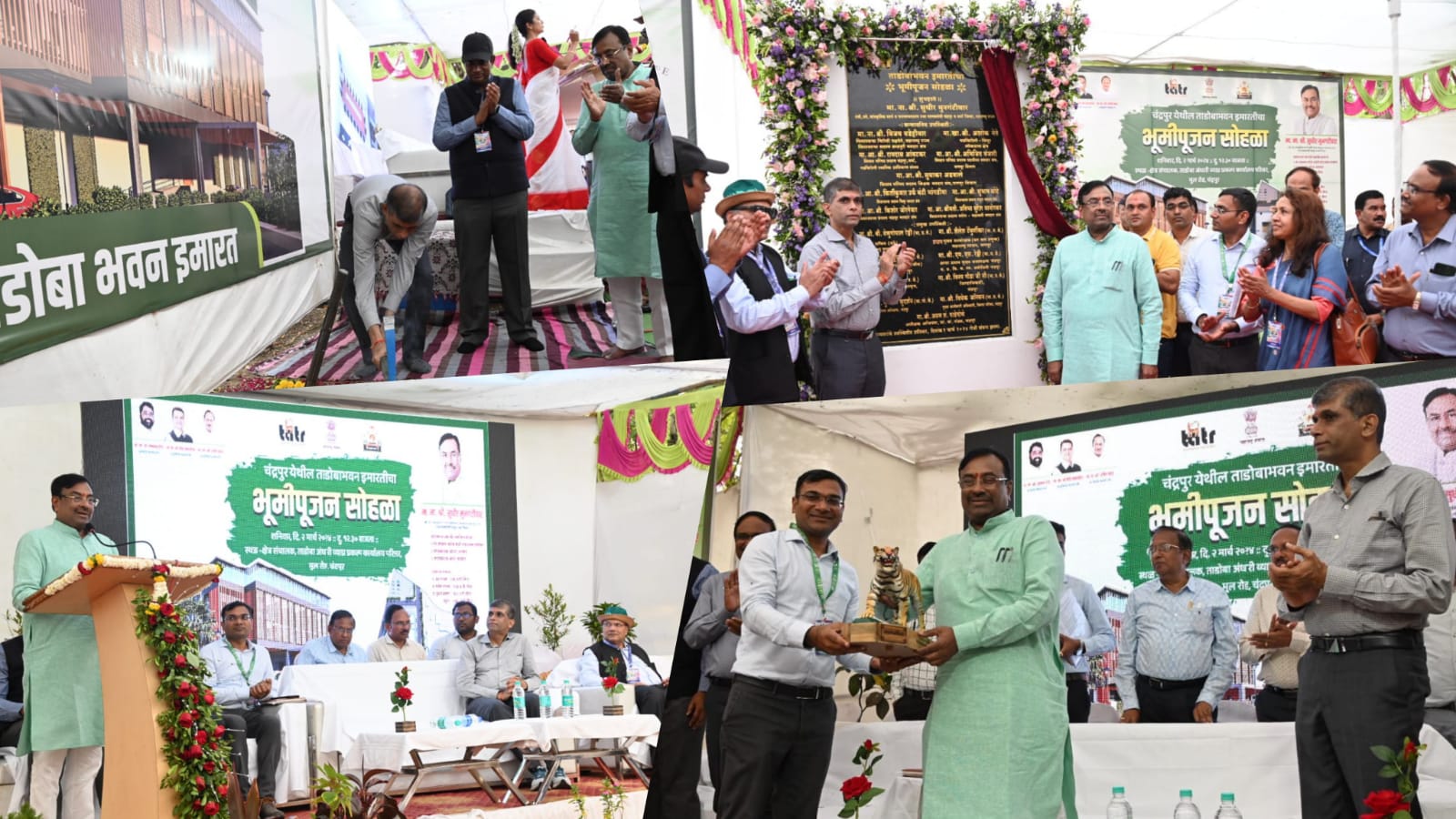 चंद्रपूर येथे ताडोबा भवनाच्या नवीन इमारत बांधकामाचे भुमिपूजन करताना वनमंत्री श्री. मुनगंटीवार बोलत होते. यावेळी वन विभागाचे प्रधान सचिव बी. वेणुगोपाल रेड्डी, प्रधान मुख्य वनसंरक्षक (वन्यजीव) तथा वनबल प्रमुख शैलेश टेंभुर्णीकर, प्रधान मुख्य वनसंरक्षक (कार्मिक) शोमिता विश्वास, महिम गुप्ता, ताडोबाचे क्षेत्रीय संचालक डॉ. जितेंद्र रामगावकर, उपवनरंक्षक कुशाग्र पाठक, जितेश मल्होत्रा, सार्वजनिक बांधकाम विभागाचे अधिक्षक अभियंता अरुण गाडेगोणे, कार्यकारी अभियंता मुकेश टांगले, विभागीय वनअधिकारी प्रशांत खाडे आदी उपस्थित होते.