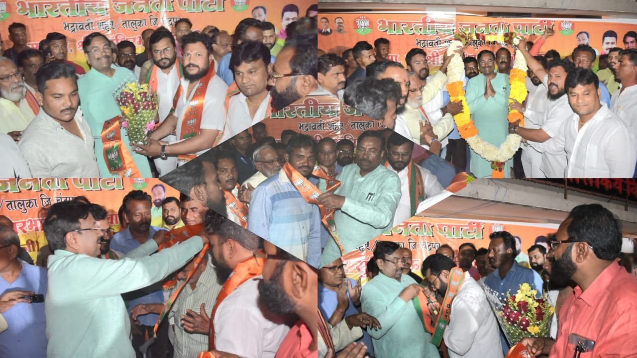 *चंद्रपूर, दि. १५ :* भद्रावती तालुक्‍यातील कॉंग्रेसच्‍या शेकडो पदाधिकाऱ्यांनी भारतीय जनता पार्टीच्‍या विचारांचा स्वीकार करीत व विकासाच्या झंझावाताचे समर्थन करीत पक्षात प्रवेश केला. राज्‍याचे वने, सांस्‍कृतिक कार्य व मत्‍स्‍य व्‍यवसाय मंत्री तथा चंद्रपूर-वर्धा जिल्‍ह्याचे पालकमंत्री ना. श्री. सुधीरभाऊ मुनगंटीवार यांच्‍या प्रमुख उपस्थितीमध्‍ये कार्यकर्त्यांनी भाजपमध्ये प्रवेश केला.