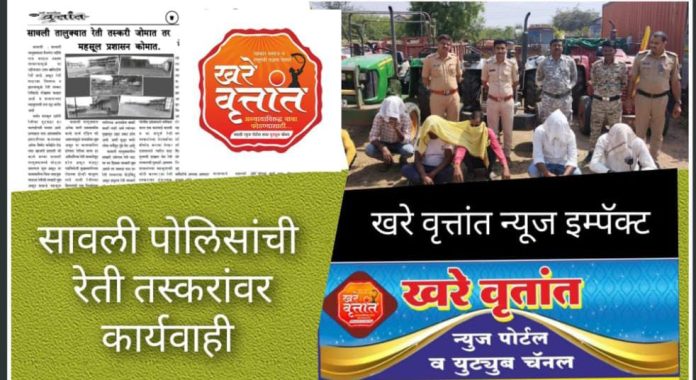खरे वृत्तांत न्यूज पोर्टल तथा अर्ध साप्ताहिक च्या माध्यमातून सावली तालुक्यात रेती तस्करी जोमात तर महसूल प्रशासन कोमात असे आशयाचे वृत्त 17 मार्च 2024 ला प्रकाशित करण्यात आले ज्यामध्ये प्रामुख्याने सावली तालुक्यात रेती तस्करी जोमात तर महसूल प्रशासन कोमात..
