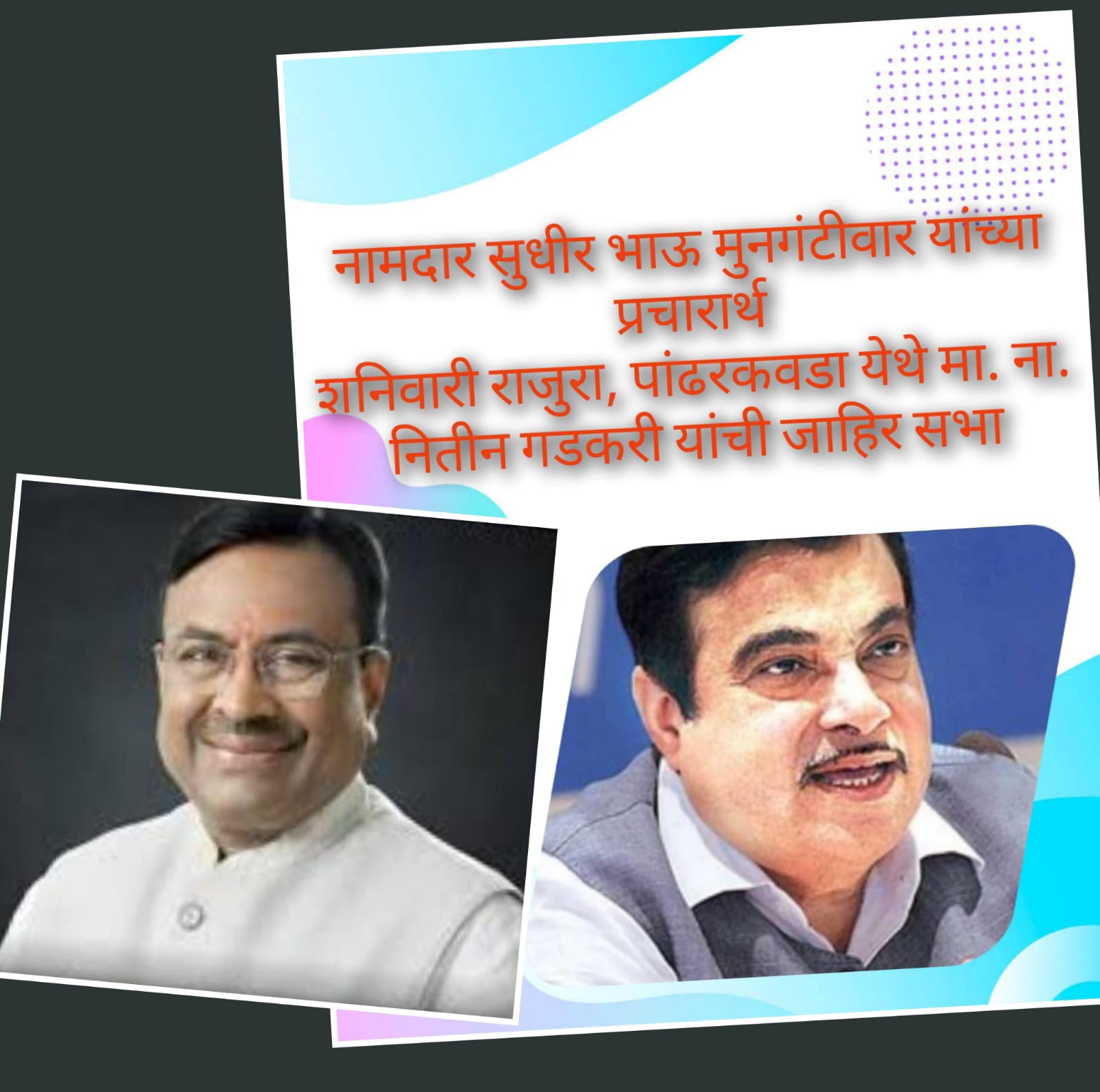 देशभर रस्ते आणि पुलांचे जाळे निर्माण करून पायाभूत सुविधांना उभारी देणारे केंद्रीय मंत्री मा. श्री. नितीन गडकरी यांच्या सभेची तयारी अंतिम टप्प्यात आहे. पालकमंत्री म्हणून मा. श्री. सुधीर मुनगंटीवार यांनी चंद्रपूर जिल्ह्यात सर्वत्र विकास कामांचा तसेच अनेक महत्वाकांक्षी प्रकल्पांचा धडाका लावून जिल्ह्याचा चेहरामोहरा बदलला आहे. प्रचार दौरे आणि सभांमधून त्यांच्या कामावर नागरीकही समाधान व्यक्त करून समर्थन देत आहेत. चंद्रपूर जिल्ह्याच्या विकासाला अधिक गती मिळावी तसेच जिल्ह्यात अनेक महत्वाकांक्षी प्रकल्प पूर्णत्वास यावेत, याकरिता विकासाला अर्थात मा. श्री. सुधीर मुनगंटीवार यांना साथ देण्याचे आवाहन समर्थकांकडून करण्यात येत आहे.
