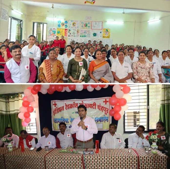 चंद्रपूर, दि. 8 : इंडियन रेड क्रॉस सोसायटी, इंडियन मेडिकल असोसिएशन व शासकीय वैद्यकीय महाविद्यालय चंद्रपूर यांच्या संयुक्त विद्यमानाने जागतिक रेड क्रॉस दिन साजरा करण्यात आला. कार्यक्रमाच्या अध्यक्षस्थानी जिल्हाधिकारी विनय गौडा जी.सी. तर प्रमुख अतिथी म्हणून शासकीय महाविद्यालयाचे अधिष्ठाता डॉ. मिलिंद कांबळे, जिल्हा शल्य चिकित्सक डॉ. महादेव चिंचोळे, इंडियन रेड क्रॉस सोसायटीचे सचिव डॉ. मंगेश गुलवाडे, आयएमए चे अध्यक्ष डॉ. संजय घाटे, सचिव डॉ. प्रवीण पंत, डॉ. बी. एच. दाभेरे, डॉ. कल्पना गुलवाडे, डॉ. राजीव देवईकर, डॉ. दुधीवार, प्राचार्य पुष्पा पोळे, अश्विनी खोब्रागडे, अँड प्रिती शहा उपस्थित होते.