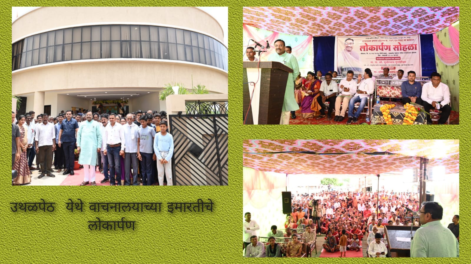 ना. श्री. सुधीर मुनगंटीवार यांच्या पुढाकारातून उथळपेठमध्ये वाचनालयाच्या इमारतीसाठी २ कोटी ५० लक्ष रुपये निधी खर्चून वाचनालयाची इमारत बांधण्यात आली . गावातील वाचनालयाची इमारत भव्य आणि अत्याधुनिक सुसज्ज असल्याचे सांगत त्यांनी इमारतीच्या बांधकामावर समाधान व्यक्त केले. नागरिकांना महत्वाच्या सेवा देण्यासोबतच त्यांच्यात वाचनाची आवड निर्माण करून बौद्धिक विकास साधण्याच्या दृष्टीने हे महत्वाचे पाऊल आहे. वाचनालयाची इमारत नागरिकांसाठी सेवाकेंद्र ठरावे, अशी अपेक्षा देखील त्यांनी व्यक्त केली.