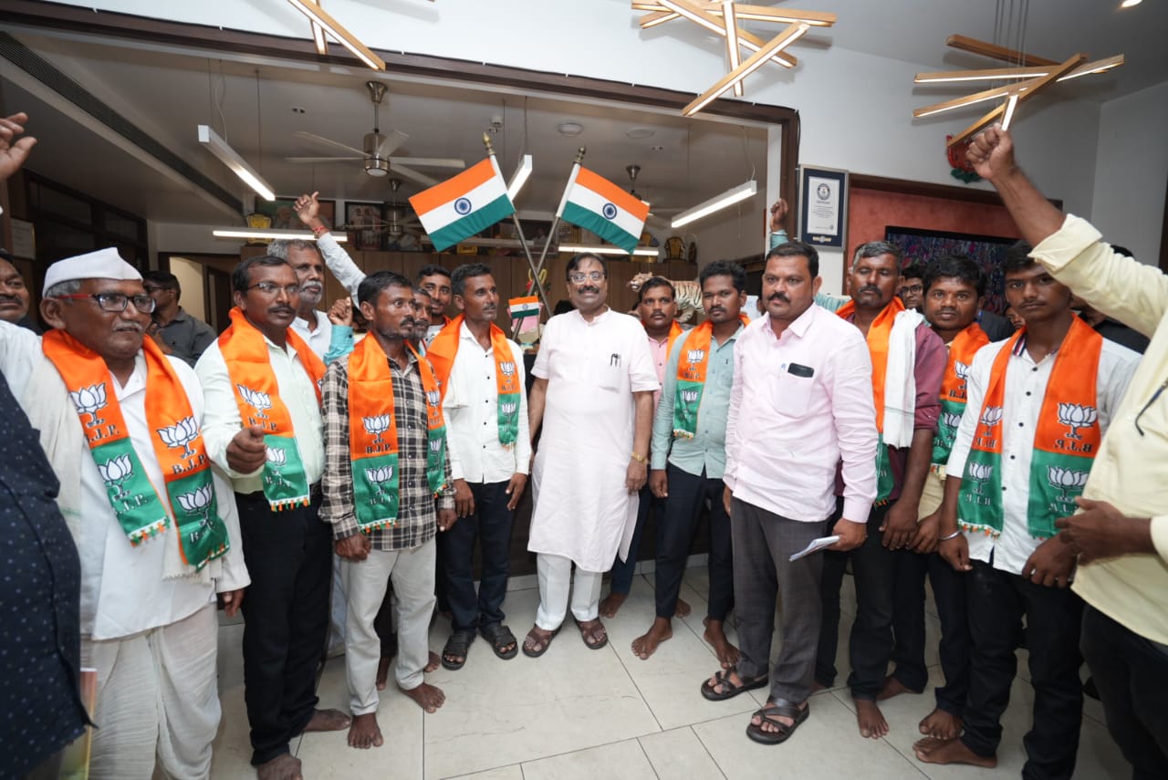 *चंद्रपूर, दि. ५ : राज्याचे वन, सांस्कृतिक कार्य व मत्स्यव्यवसाय मंत्री तथा चंद्रपूरचे पालकमंत्री ना. श्री. सुधीर मुनगंटीवार यांच्या कार्यावर विश्वास ठेवत राष्ट्रवादी काँग्रेसच्या शरद पवार गटाचे पोंभुर्णा तालुक्यातील नेते संजय पावडे व त्यांच्या सहकाऱ्यांनी भारतीय जनता पक्षात प्रवेश केला. यावेळी ना. श्री. मुनगंटीवार यांनी पावडे यांच्यासह सर्व पदाधिकाऱ्यांना भाजपचा दुपट्टा देऊन स्वागत केले.*