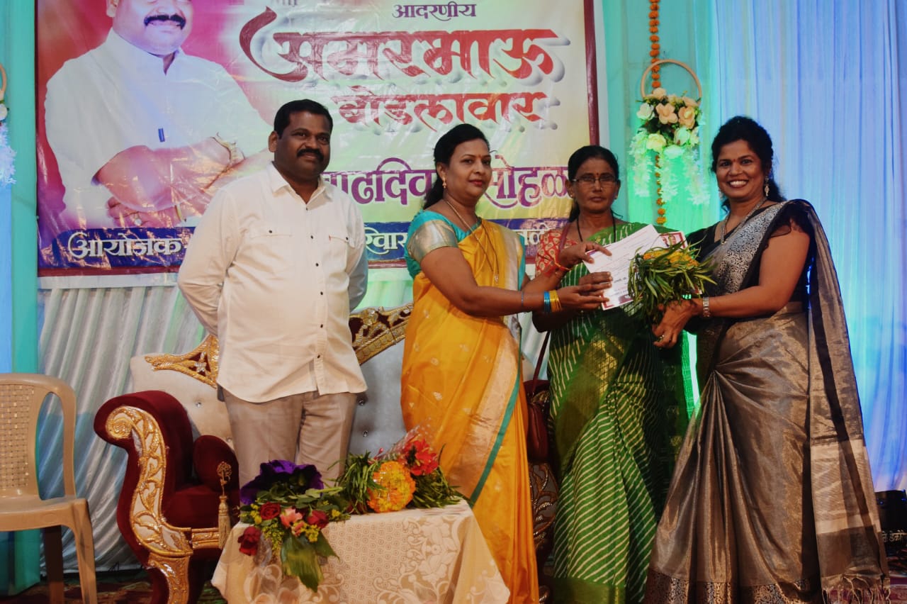 वैष्णवीताई बोडलावार व गोंडपिपरी तालूक्याचे भाजपा महिला अध्यक्ष मा. सूरेखाताई श्रीकोंडावार यांचा हस्ते देण्यात आले.तसेच राजूरा विधानसभा स्तरावर तृतीय क्रमांक गोंडपिपरी तालुक्यातील, भंगाराम तळोधीचे स्पर्धक सौ निलिमाताई सूनिल कोल्हापूरे यांना मिळाले. सर्वांनी त्यांचे अभिनंदन केले.