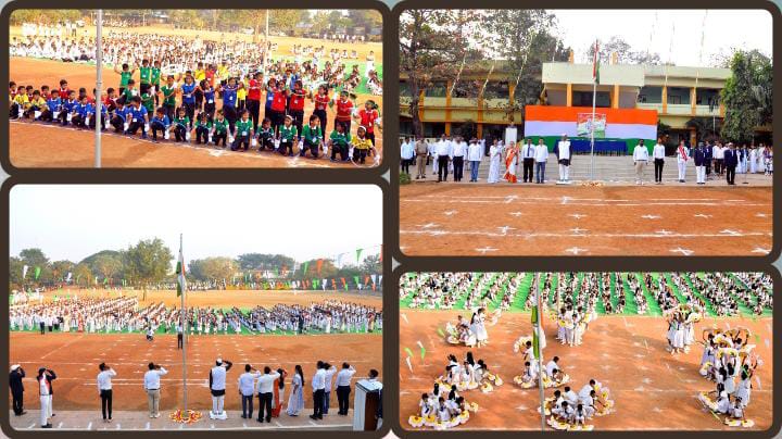 भारताच्या ७५ व्या प्रजासत्ताक दिनाचे औचित्य साधून इन्फंट जिजस सोसायटी राजुरा द्वारा संचालित इन्फंट् जिजस इंग्लिश पब्लिक हायस्कूल, कल्याण कॉलेज ऑफ नर्सिंग, बी. एस्सी. नर्सिंग, रामचंद्रराव धोटे महाविद्यालय राजुरा यांच्या संयुक्त विद्यमाने सकाळी ठिक ७.४५ वाजता संस्थेचे अध्यक्ष आमदार सुभाष धोटे यांच्या हस्ते ध्वजारोहण करण्यात आले. यानंतर इन्फंट कॉन्व्हेंट च्या विद्यार्थ्यांनी पथसंचालन सादर केले. या प्रसंगी अध्यक्षीय मार्गदर्शन करताना आ. सुभाष धोटे म्हणाले की, राष्ट्रपिता महात्मा गांधी यांच्या नेतृत्वाखाली सर्वसमावेशक प्रदिर्घ संघर्षांनंतर भारताला स्वातंत्र्य मिळाले. भारतीय राज्यघटनेचे शिल्पकार डॉ. बाबासाहेब आंबेडकर आणि घटना समितीने जगातील सर्वात मोठे व सक्षम असे संविधान देशासाठी तयार व लागू केले. ज्यामुळे विविधतेने नटलेला भारत एकसंघ राहून एका महासत्तेच्या दिशेने वाटचाल करीत आहे. त्यामुळे प्रजासत्ताक भारताचे नागरीक असल्याचा अभिमान प्रत्येक भारतीयांनी बाळगला पाहिजे असे मत व्यक्त केले. सर्वांना प्रजासत्ताक दिनाच्या शुभेच्छा दिल्या.