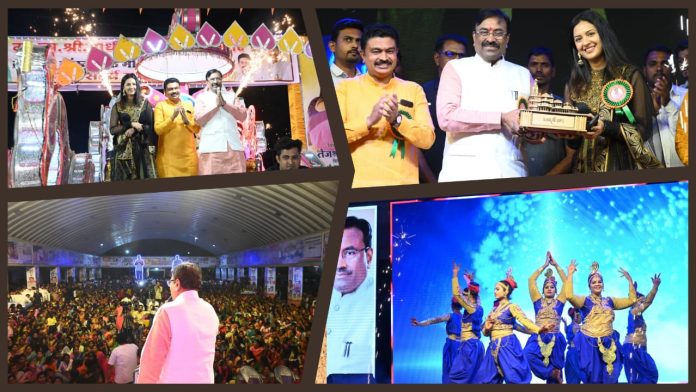ना. श्री. सुधीर मुनगंटीवार म्हणाले, ‘चंद्रपूर ही वाघ आणि वाघिणीची भूमी आहे. आज तेजश्री प्रधान यांच्या रुपाने अभिनयातील वाघीण आपल्या दर्शनासाठी आली आहे. या सोहळ्याला नजर जाईल तेथवर मातृशक्ती दिसत आहे. इथे गर्दी आहे आणि दर्दीही आहेत. घुग्घुसवर मी जेवढे प्रेम केले, त्यापेक्षा जास्त प्रेम मला येथील नागरिकांनी दिले. गेल्या वर्षभरात मी अनेक चित्रपटांना अनुदान दिले. पण आज येथील मातृशक्तीने सादर केलेले नृत्य, त्यांनी सादर केलेल्या कला बघून, येथील कलावंतांना सोबत घेऊनच एखादा चित्रपट करावा की काय, असा विचार माझ्या मनात आला. घुग्घुस येथील माता-भगिनींसह सर्व नागरिकांना खूप आनंदी ठेवावे, अशी प्रार्थना मी परमेश्वराकडे करतो.’ यावेळी त्यांनी देवराव भोंगळे आणि विवेक बोढे यांच्या शिस्तबद्ध आयोजनाचे कौतुक करत यांच्या सारखे कार्यकर्ते मिळाल्याने मी स्वतःला नशीबवान समजतो, अशी उत्स्फूर्त प्रतिक्रिया व्यक्त केली.