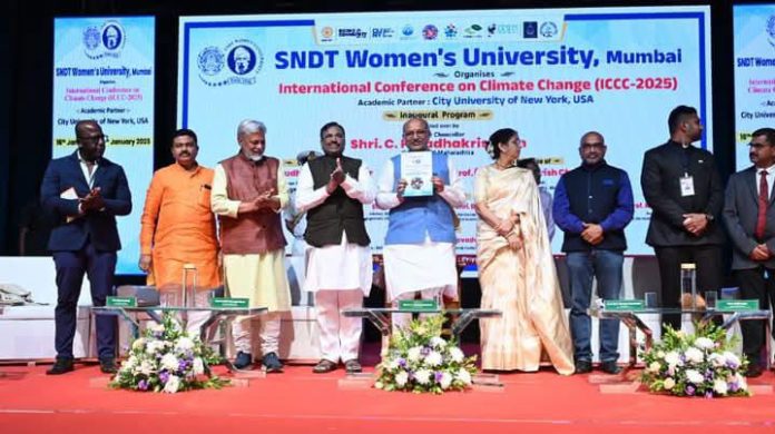 एसएनडीटी महिला विद्यापीठातर्फे आयोजित ‘इंटरनॅशनल कॉन्फरन्स ऑन क्लायमेट चेंज-2025’चे गुरुवारी (दि. १६ जानेवारी २०२५) महामहीम राज्यपाल यांच्या हस्ते उद्घाटन झाले. त्यावेळी ते बोलत होते. या तीन दिवसीय संमेलनाला राज्याचे माजी वने, सांस्कृतिक कार्य व मत्स्यव्यवसाय मंत्री आमदार श्री. सुधीर मुनगंटीवार यांची प्रमुख उपस्थिती होती. तसेच एसएनडीटीच्या कुलगुरू डॉक्टर उज्वला चक्रदेव,आमदार देवराव भोंगळे, जलपुरुष राजेंद्रसिंह, एसएनडीटीचे विलास नानीवाडेकर, युएसचे कॉन्सिलेट जनरल सलील कादेर, कुणी युनिव्हर्सिटी न्यूयॉर्कचे प्राध्यापक नील फिलिप, प्रभारी जिल्हाधिकारी विवेक जॉन्सन, एसएनडीटी बल्लारपूर कॅम्पस संचालक राजेश इंगोले, मनपा आयुक्त विपिन पालीवाल, गोंडवानाचे कुलगुरू डॉ प्रशांत बोकारे आदींची यावेळी उपस्थिती होती.
