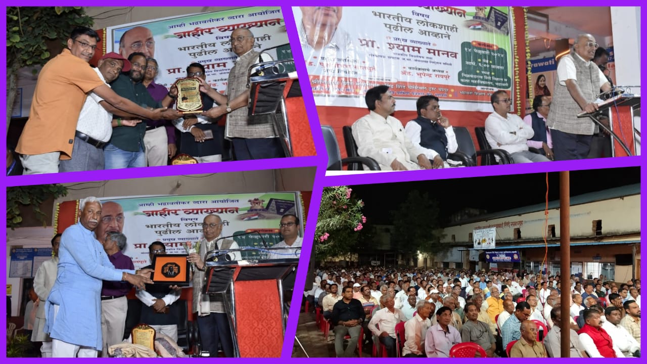 ती येणाऱ्या लोकशाही मधील धोक्याची घंटा आहे ही सर्व बाब लोकशाहीतील प्रत्येक नागरिकांनी समजून घेतली पाहिजे असे स्पष्ट मत आम्ही भद्रावतीकर द्वारा आयोजित “लोकशाही पुढील आव्हाने” व्याख्यान कार्यक्रमात राजकीय विश्लेषक व अंधश्रद्धा निर्मूलन समितीचे संघटक व संस्थापक प्रा. श्याम मानव यांनी केले. निळकंठराव शिंदे कला व विज्ञान महाविद्यालयातील खुल्या प्रांगणात भद्रावती शिक्षण संस्था, भद्रावती स्व. श्रीनिवास शिंदे मेमोरियल रवींद्र शिंदे चॅरिटेबल ट्रस्ट चंद्रपूर ,अखिल भारतीय ग्रामीण पत्रकार संघ तथा भद्रावती पत्रकार असोसिएशन द्वारा आयोजित कार्यक्रमात प्रा. श्याम मानव प्रमुख मार्गदर्शक व व्याख्याता म्हणून बोलत होते .